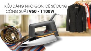 - Công suất 950 – 1100W ủi quần áo thẳng nhanh.