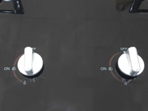 - Mặt bếp bằng kính cường lực sáng bóng, bền bỉ, dễ lau chùi.