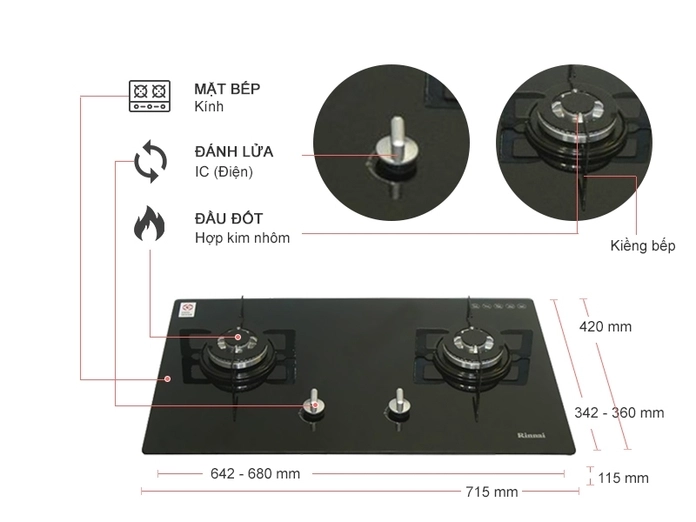 - Bếp gas Rinnai thương hiệu Nhật Bản uy tín, chất lượng.