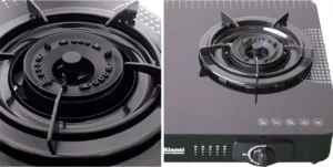 Thiết bị có đầu đốt bằng hợp kim đồng thau chất lượng cao, bền bỉ cũng như không bị bào mòn trong khoảng thời gian lâu dài. Đầu đốt này cho ngọn lửa màu xanh, có khả năng không làm đen dụng cụ nấu tiện lợi.