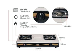 - Đầu đốt làm bằng thép dập, tối ưu gas khi dùng