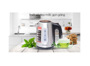 Bình đun siêu tốc Sharp kiểu dáng hiện đại, gọn đẹp, dung tích 1.5 lít phù hợp sử dụng tại gia đình, văn phòng cho nhu cầu nước nóng pha trà, sữa, nấu mì…