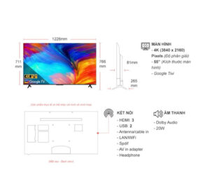 - Hình ảnh sắc nét gấp 4 lần tivi Full HD nhờ độ phân giải 4K UHD