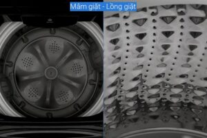 - Máy giặt lồng đứng hiện đại, bảng điều khiển tiếng Việt dễ sử dụng.