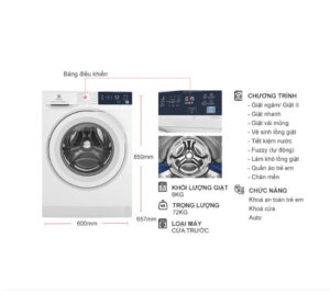 • Máy giặt Electrolux thiết kế cửa trước sang trọng, hiện đại, kết hợp màu trắng trang nhã