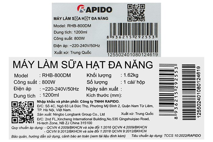 Đánh giá Máy làm sữa hạt đa năng Rapido RHB-800DM