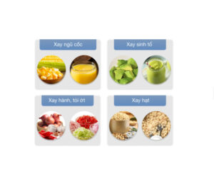 Chức năng: Ngũ cốc Xay gia vị: Hành, tỏi, ớt, nấm,… Xay hạt Xay sinh tố