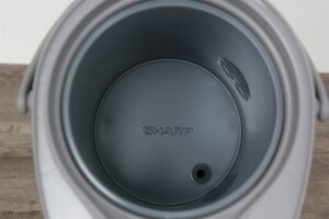 Bình thủy điện Sharp thiết kế hình trụ thon gọn, sang trọng, thân dày chắc, giữ nhiệt tốt, dung tích 3 lít thích hợp cho gia đình 2 – 4 người dùng