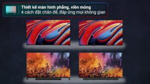 – Tùy vào thiết kế và nhu cầu sử dụng để bạn lựa chọn việc treo tường hoặc để bàn cho tivi Mini LED. Sản phẩm được trang bị 2 chân đế được làm từ hợp kim nhôm cứng cáp, khả năng chịu lực tốt, có thể lắp đặt theo 4 cách khác nhau bao gồm: kiểu tiêu chuẩn, kiểu hẹp thích hợp cho kệ nhỏ, kiểu hỗ trợ loa thanh và cuối cùng kết hợp với soundbar tiện lợi.