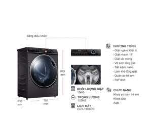 - Khối lượng giặt lớn 15kg, thích hợp sử dụng cho gia đình đông người