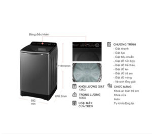 - Máy giặt có khối lượng giặt 13 kg thích hợp cho gia đình trên 7 người