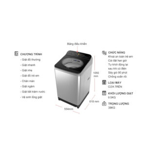 | Chế độ giặt: | 10 chương trình (có giặt thường, giặt nhanh, giặt tiết kiệm nước, giặt vải mỏng, giặt ngâm, giặt chăn mền, giặt đồ trẻ em, vệ sinh lồng giặt, sấy gió 90′, chống xoắn rối) |
