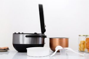 Công nghệ nấu IH 3D hiện đại, nhiệt tỏa ra bao quanh thành nồi và phía trên nắp không những giúp hạt gạo trong nồi được chín đều ở bên trong và chín từ từ mà còn giữ ấm cho hạt cơm trở nên ngon hơn.