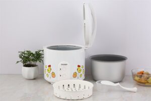 Nồi cơm điện nắp gài Sharp 1.8 lít KS- 183TJV-CH màu trắng trang nhã, sử dụng hoa văn hình gà màu vàng dễ thương