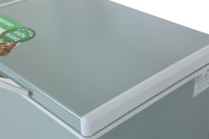 Bên ngoài tủ đông được phủ lớp sơn màu xám bắt mắt, thân và cửa tủ được làm từ thép sơn tĩnh điện có độ bền cao. Đây là bước cải tiến hoàn toàn mới, mang lại sự bền bỉ, không bong tróc cùng khả năng chống xước, chống gỉ mạnh mẽ. Ngoài ra người dùng cũng dễ lau chùi, giữ cho tuổi thọ tủ được dài lâu.