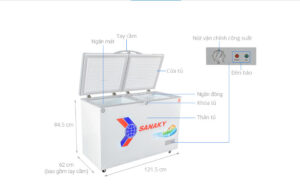 Tủ có dung tích là 260 lít và được chia làm 2 ngăn đông 106 lít và ngăn mát 154 lít riêng biệt, có dán nhãn chỉ dẫn tiện quan sát, tủ đông Sanaky cho phép bạn dễ dàng phân loại thực phẩm để bảo quản.