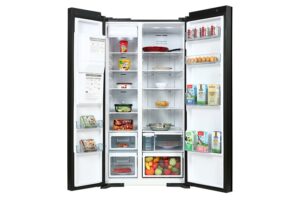 – Thuộc dòng tủ lạnh Side By Side được thiết kế 2 cánh, màu đen sang trọng với chất liệu cửa tủ làm bằng kính không viền tinh tế, phù hợp cho mọi vị trí bên trong nhà bếp.
