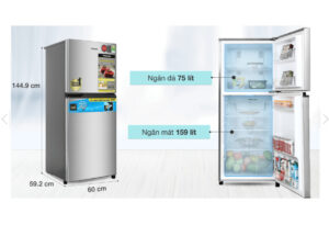 Kích thước tủ lạnh: Cao 144.9 cm – Rộng 60 cm – Sâu 59.2 cm – Nặng 41 kg